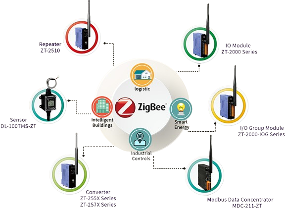ZigBee technology offers robust wireless communication for industrial I/O applications, particularly suited for environments where wiring is impractical or too expensive. The self-forming, self-healing mesh network architecture ensures reliable data transmission even in challenging industrial environments.