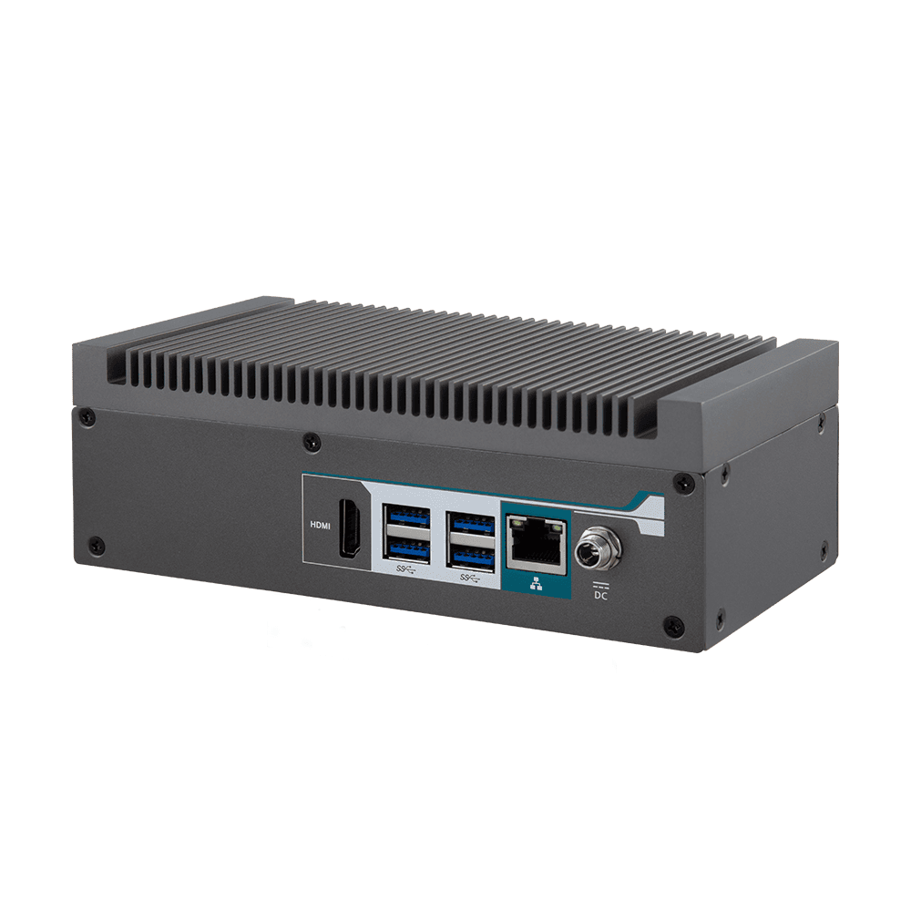 Fanless Edge AI Box PC, NVIDIA Jetson Orin Nano 6-Core SoC, 8GB LPDDR5 RAM, NVIDIA Ampere 1024-Core GPU, 256GB NVME SSD, HDMI, 1xGbE LAN, 4xUSB 3.2, 1xUSB Type-C 2.0, 1xCAN 2.0, 1xM.2 Key-E, 9-24VDC-in