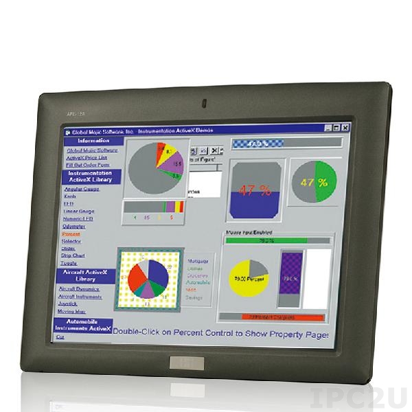 8.4" 450cd/m2 SVGA LED fanless panel PC with Intel Atom N2600 1.6GHz CPU, resistive touch screen, Intel NM10, 2GB DDR3 RAM, mSATA, 2xCOM, 2xUSB 2.0, 3xRJ45, VGA, WLAN, Audio, power adapter 12V DC 90-264V AC