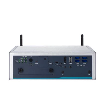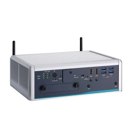 Fanless Embedded System with CPU Board GPU NVidia Jetson Xavier AGX, CPU 8-core NVIDIA Carmel ARM, GPU NVIDIA 512 CUDA cores, 32GB LPDDR4, 32GB eMMC, 1xHDMI, 2xGbE LAN, 4xPoE, 2xUSB 3.0, 2xUSB 2.0, OTG, PCIe Mini, 1 x M.2, SIM, MicroSD, 24VDC, NVMe