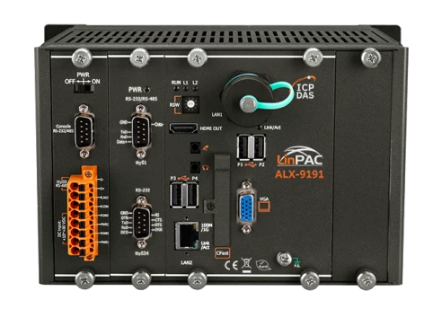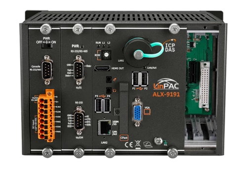 PC-compatible industrial controller, Intel Atom E3950 CPU, 8GB DDR4, 64GB SSD, 32GB CF, VGA, HDMI, 1xRS-232, 1xRS-485, 2xRS-232/485, 4xUSB, 2xEthernet, 1 Expansion Slot, Ubuntu 20.04 Linux kernel 5.4, 19-30VDC-in