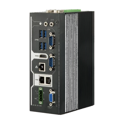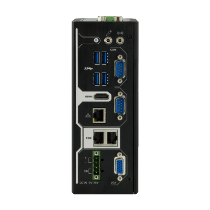 Fanless Din-Rail Embedded PC, Intel Atom/Celeron CPU, Up to 8GB DDR3L RAM, 64GB eMMC, HDMI/VGA, 1xPoE GbE LAN, 2xGbE LAN, 4xUSB 3.0/2.0, 4xCOM, 8-bit DIO, 32-bit DIO, 2xMiniPCIe, SIM, 1xM.2, 9-36VDC-In, -40..70C, R1.2