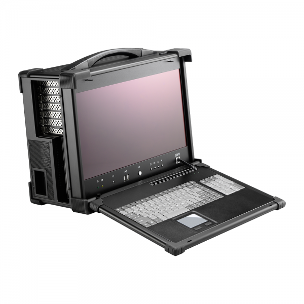 Aluminum case for a workstation with a 17.3", 1920x 1080 LCD for ATX MB, 7 slot, DisplayPort, 1x 5.25", 2x3.5" slim DVD-RW, 750W ATX, carrying case