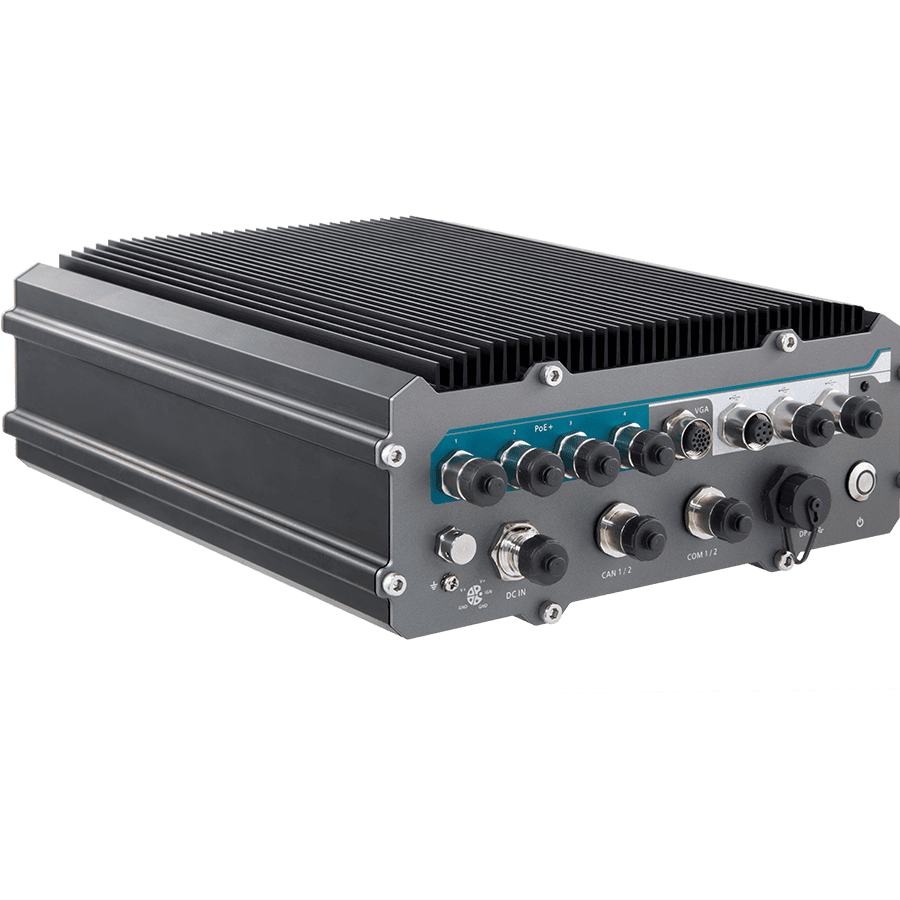 Fanless Rugged Box PC, IP69K Full, Intel 12/13/14th Gen Core i9/i7/i5/i3 CPU, Q670E, Up to 96GB DDR5 RAM, 1xUSB-C DP Alt., 10xM12 Con. (VGA, 4x2.5GbE PoE+ LAN, 6xUSB 2.0, 2xCOM, 2xCAN-FD), 2x2.5" Drive Bay, 2xMiniPCIe, 1xM.2 Key-B, 9-48VDC-in M12