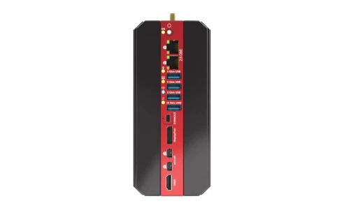 DIN-Rail Bedrock R8000 PC, AMD Ryzen 8000 Series CPU, 60W TDP, Up to 96GB DDR5 RAM, HDMI+USB4 or HDMI/DP/2xMiniDP, Up to 4x2.5GbE LAN, 4xUSB 3.2, Up to 5xM.2 (3xKey-M NVME/Hailo, 1xKey-E WiFi+BT/Hailo, 1xKey-B LTE), Up to 12-60VDC-in w/ Power Module