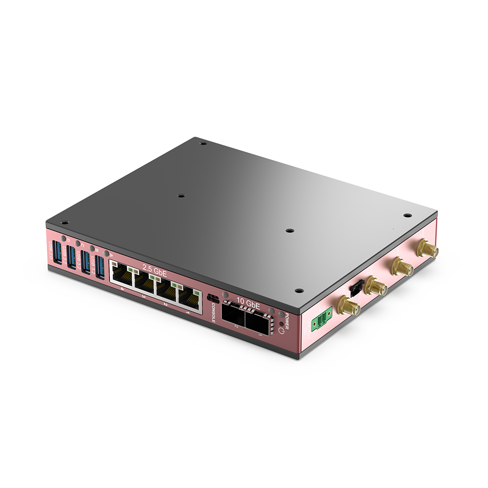 Fanless Bedrock PC, AMD Ryzen Embedded V3000 CPU, up to 64GB DDR5 SO-DIMM RAM, 2x10GbE LAN, 4x2.5GbE LAN, 3xM.2 2280 NVMe, 1xM.2 for WiFi/BT, 1xM.2 for 4G/5G, 3xUSB 3.2, 1xUSB 2.0, 12-60V DC-in, 0..70C (wide temp. optional)