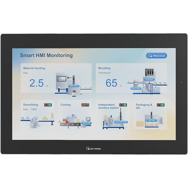 21.5" Operator Panel (HMI), IP66 Front, NEMA4 Certification, 1920x1080, 500cd/m2, PCAP Touch, Quad-core RISC SoC, 2GB RAM, 4GB Flash, 1xGbE LAN, 1x100MbitLAN, 2xUSB 2.0, 2xCOM, 1xCAN, 24VDC-in