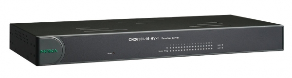 Dual-LAN terminal server with 16 RS-232/422/485 ports and 2 kV optical isolation, 88 to 300 VDC power input, -40 to 85C operating temperature