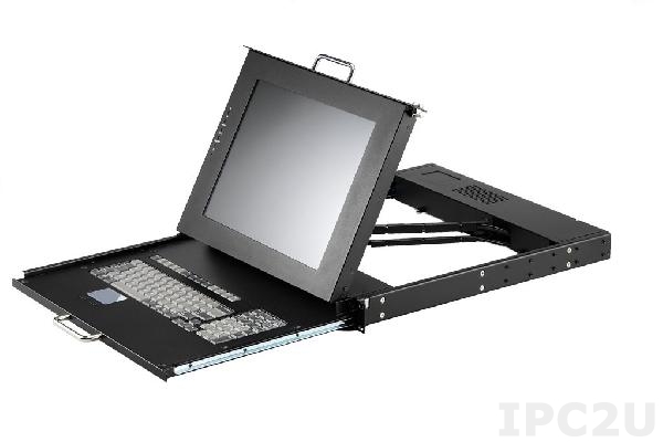 1U, 17" LCD-keyboard drawer, PS2 port, with 1x 1.8m PS2 KVM cable, TouchPad, dual-rail, Black metal