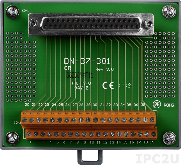 DB-37 Connector Termination Board (Pitch 3.81mm), DIN-Rail Mounting, 50V