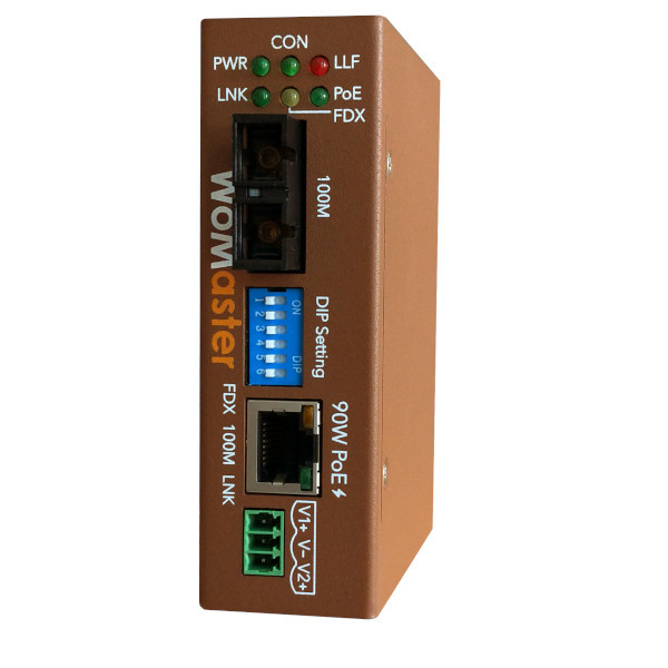 Indastrial PoE Switch, 1x10/100Base-TX , 1x100Base-FX, 1 SC Multimode 2KM , 46..57VDC, -40..75 C Operating Temperature