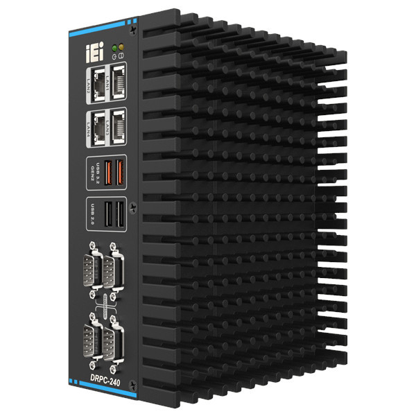 Fanless DIN-Rail Box-PC, Intel Core i5-1145G7E CPU, 8GB (Up to 64GB) DDR4 RAM, HDMI, DP++, 4x2.5GbE LAN, 2xUSB 3.2, 2xUSB 2.0, 4xCOM, 12-bit DIO Opt., 1x2.5" Drive Bay, 1xM.2 3042/52/80 Key-B, 1xM.2 2230 Key-A, 1xPCIe x4 Opt., 12-28VDC-in