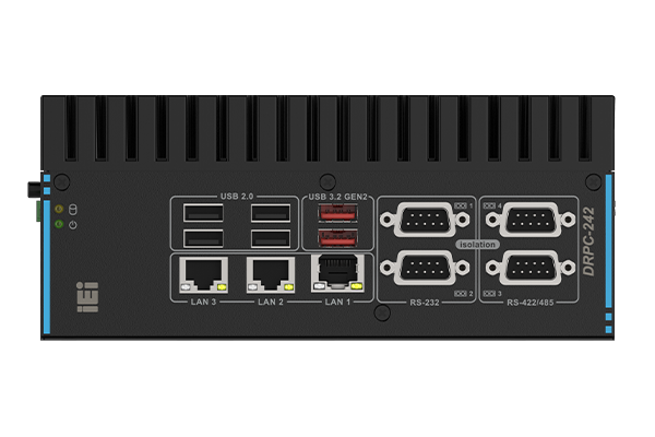 DIN-Rail Embedded System, Intel Core i3-1220P CPU, 8GB DDR4 RAM, HDMI/DP, 3x2.5GbE LAN, 4xCOM, 2xRS232 Opt., 2xUSB 3.2, 4xUSB 2.0, 12-bit GPIO Opt., 1x2.5" Drive Bay, 1xM.2 2280 Key-M, 1xM.2 3052/3042 Key-B, 1xM.2 2230 Key-E, 12-28VDC-in