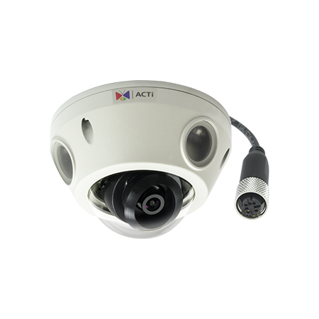 10MP Outdoor Mini Dome with D/N, Adaptive IR, Basic WDR, M12 connector, Fixed lens, f3.6mm/F1.8, H.264, 1080p/30fps, 2D+3D DNR, Audio, MicroSDHC/MicroSDXC, PoE, IP68, IK10, EN50155