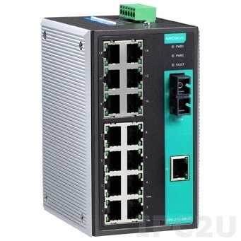 Industrial Ethernet Switch with 15 10/100BaseT(X) Ports, 1 Multi Mode 100Base FX Port, SC Type Connector, Extended Operating Temperature -40...+75°C, RoHS