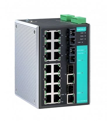 Industrial Managed Redundant Ethernet Switch with 14x 10/100 BaseTx Ports, 2x Multi Mode 100 BaseFX Ports, SC Type Connectors and 2x 10/100/1000 BaseTx Ports, RoHS