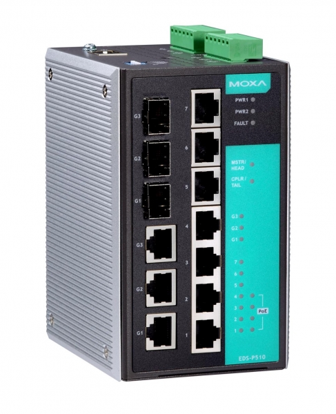Managed Gigabit Ethernet switch with 3 10/100BaseT(X) ports, 4 PoE 10/100BaseT(X) ports, and 3 10/100/1000BaseT(X) or 100/1000BaseSFP slots combo ports, 0 to 60°C