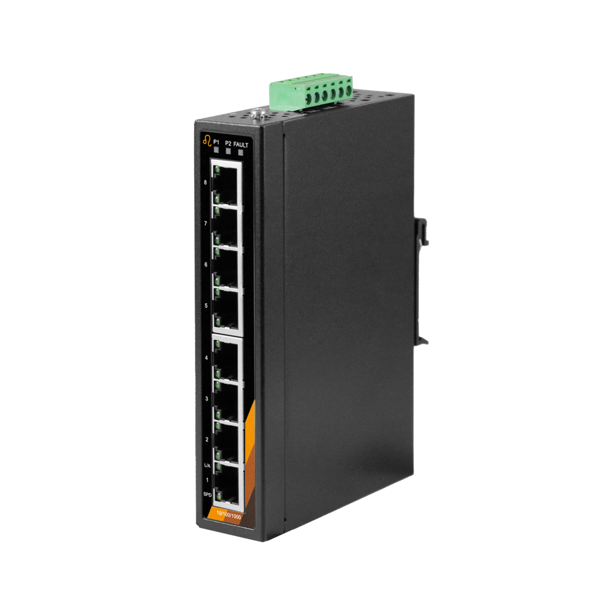 Industrial Ethernet Switch, IP30, 8x10/100/1000Base-T, Dual 12..48VDC, Operating Temperature -10..65 C