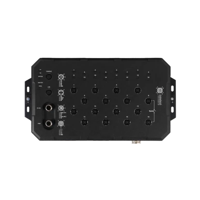 Industrial M12 Ethernet Switch, IP67, 16x10/100/1000Base-T M12, 1xCOM, 1xDI, Dual 12..48VDC, Operating Temperature -10..65 C