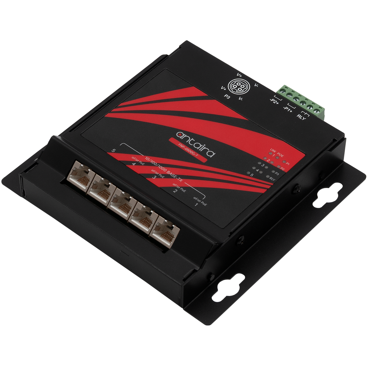 Industrial PoE+ Unmanaged Flat Ethernet Switch, 5x10/100/1000Base-TX with 4xPoE+, 48..56VDC, Operating Temperature -40..75 C