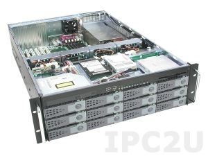 19" Rackmount 3U Chassis, EATX, 1x5.25"Slim/1x3.5"Slim/12x3.5"Hot Swap SAS HDD/2x2.5"HDD Drive Bays, without P/S