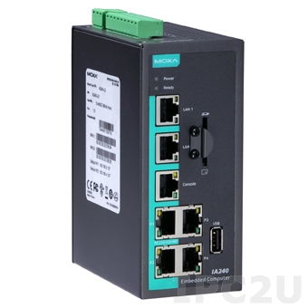 Embedded computer with ARM9, 4 RS-232/422/485 Ports, 4 DI Channels, 4 DO Channels, Dual LAN, USB, SD, Linux OS, Wide Temperature -40...+75C