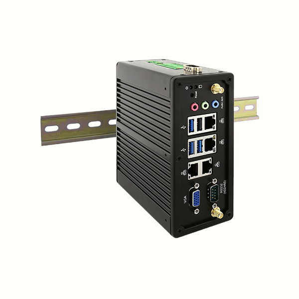 DIN-Rail Box PC, ATEX C1D2, Intel Atom E3950 1.6GHz SoC, 4GB DDR3L RAM, 128GB M.2 SSD, VGA, 4xGbit LAN, 2xCOM, 3xUSB 3.2, 1xUSB 2.0, 2xM.2, TPM 2.0, Audio, 9-36VDC-in Terminal Block with PSU, -40..70C Wide Temp.