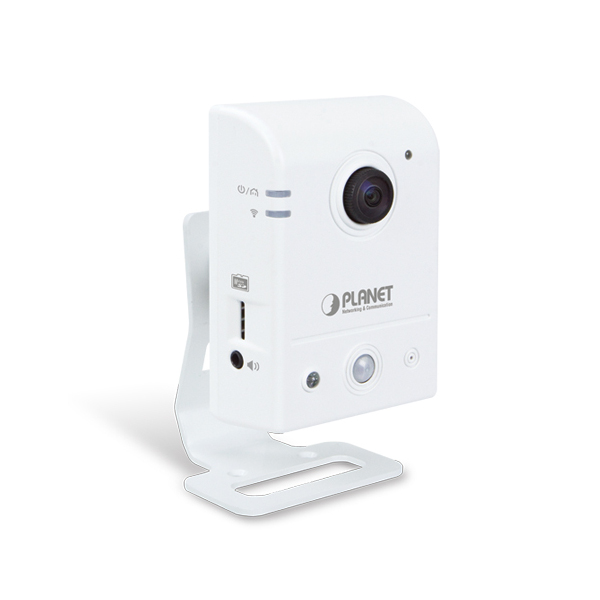 Wireless Cube Fish-Eye IP Camera. 11n Wireless, WPS, 180" Panoramic, H.264/MJPEG, 720P@30fps, 2-way Audio, ICR, ePTZ, MicroSD, ONVIF, Intelligent Motion Detection, PLANET Easy-DDNS