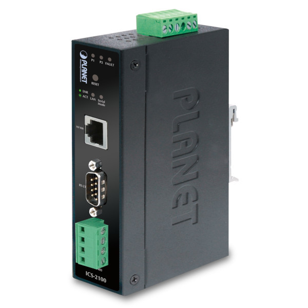 Industrial Media Converter, RS232/422/485 to 100Mbps Base TX, redundant 12-48V DC, -10..+60C operation temperature