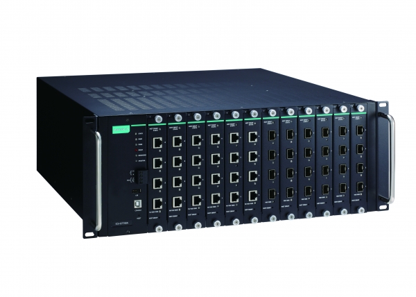 Layer 3 Full Gigabit managed Ethernet switch with 12 slots for 4-port 10/100/1000BaseT(X) module or 4-port 100/1000BaseSFP slot module, 2 isolated power supplies (85 to 264 VAC), -10 to 60C operating temperature
