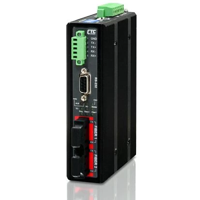 Industrial RS-232/422/485 Daisy Chain Fiber Media Converter with Optical Single-mode ST port, Distance 30km, 2.5kV Isolation, Redundant Dual 12/24/48VDC Input Power, -10.. 60C Operating Temperature