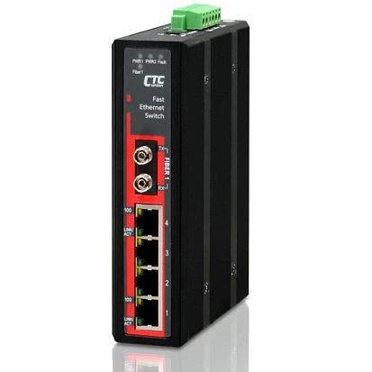 Industrial Unmanaged Fast Ethernet Switch with 4x 100Base-T Ports, 1x 100 Base-FX Fiber SC 50km Single-mode port, Redundant Dual 12/24/48VDC, -10..+60C Operating Temperature