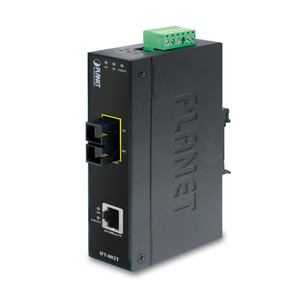 Industrial Fast Ethernet Media Converter with 1x100 Mbit/s Base TX to 1x 100Base-FX SC SM, single mode, 15km distance, 1310nm optical frequency, 6kV protection, 12-48V redundant DC, -40..+75C operation temperature
