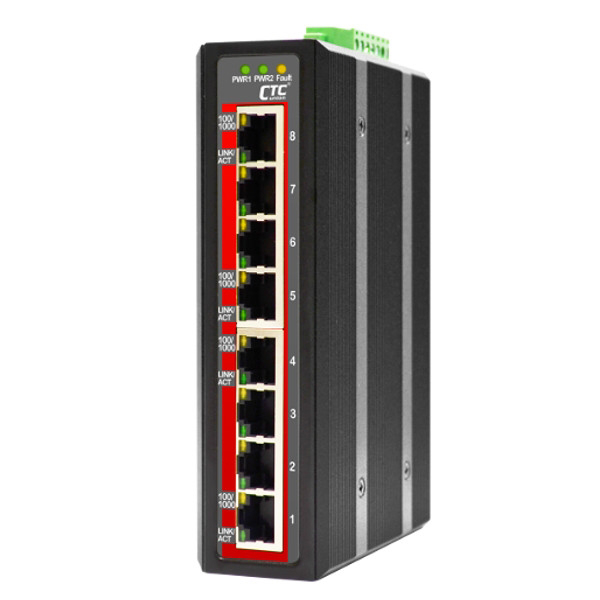 Industrial Unmanaged Gigabit Ethernet Switch with 8x 1000 Base-T Ports, 9.6...60VDC-In, -10..+60C Operating Temperature