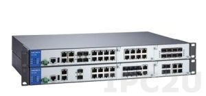 Modular managed Ethernet switch with 8 10/100BaseT(X) ports, 2 10/100/1000BaseT(X) or 1000BaseSFP combo ports, and 2 slots for fast Ethernet modules, front cabling, 1 isolated power supply (24 VDC), -40 to 75C