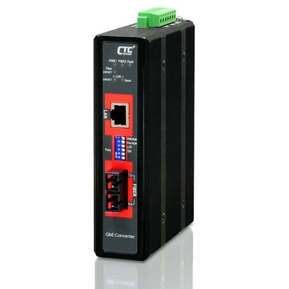 Industrial Unmanaged Gigabit PoE Media Converter 10/100/1000 Base-T to 100/1000 Base-X Fiber Optics Multi-mode SC port, Distance 500m, Redundant dual 12/24/48VDC input power, -20.. 75C Operating Temperature