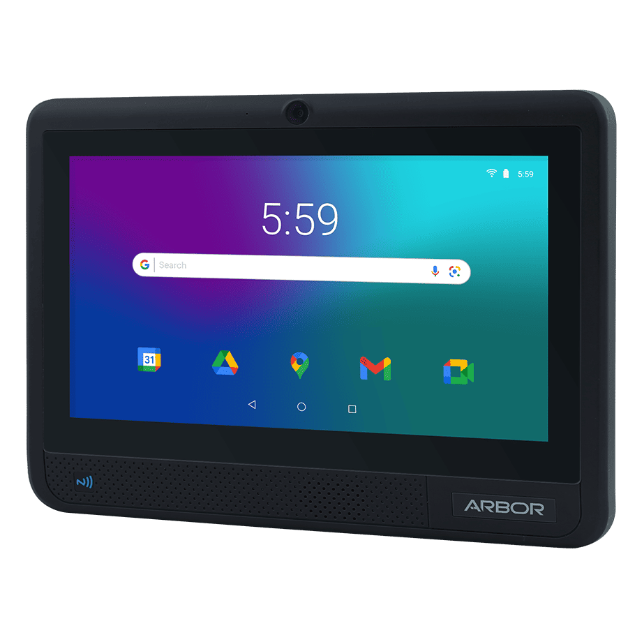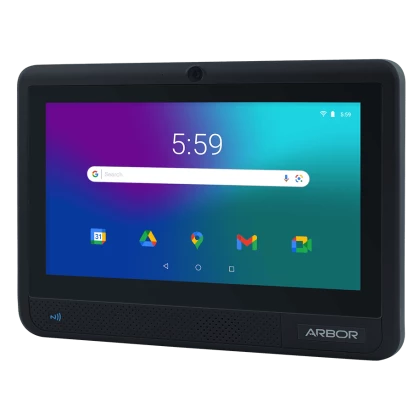 8" Fanless Panel PC, 1024x600, PCAP Touch, 450cd/m2, MediaTek Genio 350 SoC, 4GB LPDDR4x RAM, 64GB eMMC Flash, 1x100Mbit LAN, 2xUSB 2.0, 1xMicroUSB, 2xCOM, 6-bit DIO, CAN, MicroSD, Wi-Fi5/BT5/GPS, RFID/NFC, Mic/Audio, 9-36VDC-in, -20..70C, Android 13