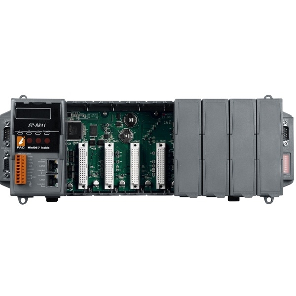 PC-compatible 80MHz Industrial Controller, 512kb Flash, 768kb SRAM, 64 MB NAND Flash disk, 2xLAN, 2xRS232, 1xRS485, 1xRS232/485, 7-Segment Display, Mini OS7, 8 Expansion Slots