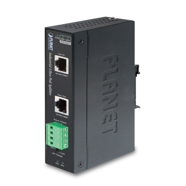 Industrial Gigabit Power-over-Ethernet Splitter, 2x1000Mbps RJ45, 6KV DC ESD protection, 44-57VDC Input Voltage, up to95 W PoE Output(12/24VDC), -40..+75C Operating Temperature