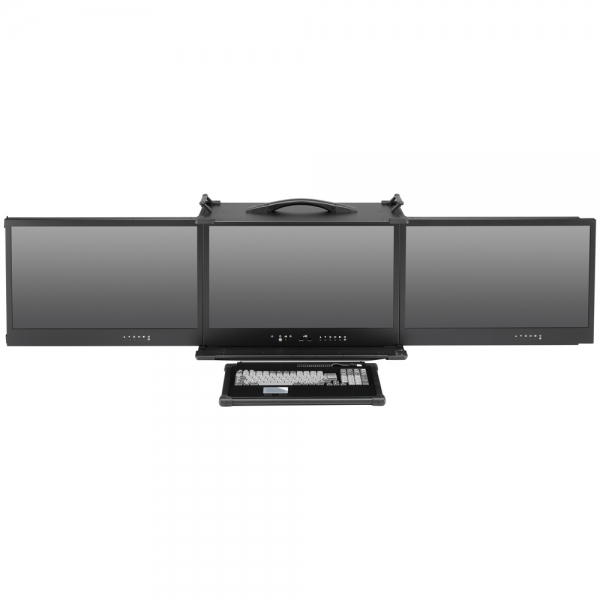 Industrie Portable Workstation, 3x 23.8" 3840x2160 Displays, Intel i5-9600 3.1-4.6GHz, C246 Chipset, 8GB DDR4 RAM (max.128GB), 128GB SSD, DVDRW, 2xGbit LAN, 10xUSB, 1xPCIe x16 / 2x PCIe x4, 3xPCI PS2 750W PSU