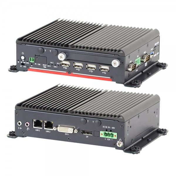 Rugged Box PC, Intel Celeron J1900 CPU, Up to 8GB DDR3L SO-DIMM, DVI-D, DP, 5xUSB, 2xCOM, isolated GPIO, 2xGbE, 1x2.5" SATA, 1xCFast/mSATA/Mini-PCIe, 1xMini-PCIe, 2xSIM, 6x Antenna holes, Audio, CMOS Battery, 9..48VDC, -40..70C