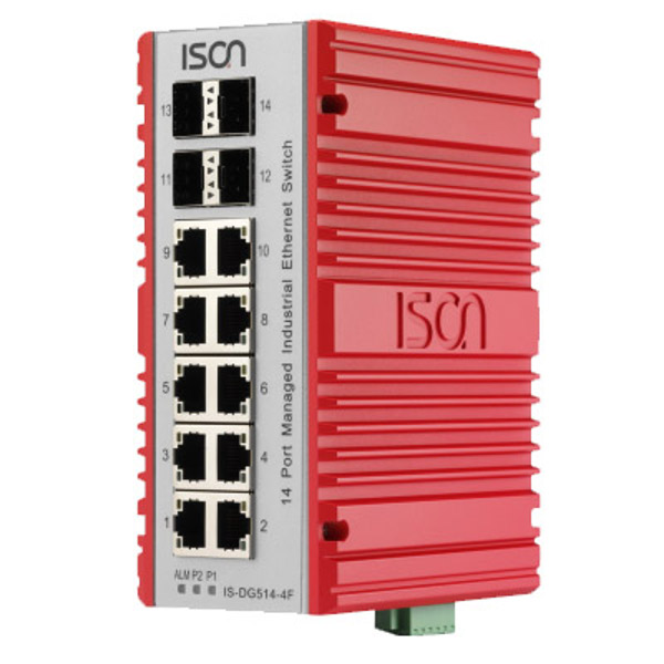 Industrial 14-port Din-Rail Managed Ethernet Switch with 10x 1000Base-TX RJ45 with 2kV and 4x 1000Base-FX SFP Slot, -40-75 operating temperature, Single-AC Power Input