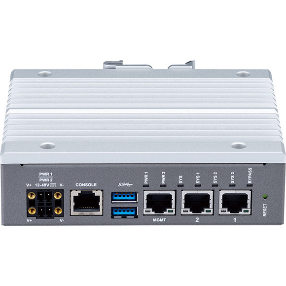 Fanless Ultra-compact OT Security Gateway, Intel Atom x6416RE CPU, 1xLPDDR4 up to 8GB, eMMC up to 40GB, 3xGbE, 2xUSB, Dual 12..48VDC, Operating temperature -40..75C