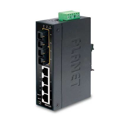 Industrial DIN-Rail Fast Ethernet Unmanaged Ethernet Switch, 4x100 Base(TX), 2xBase(FX), 15km distance, Single mode, 12-48VDC, -10..+60C Operating Temperature