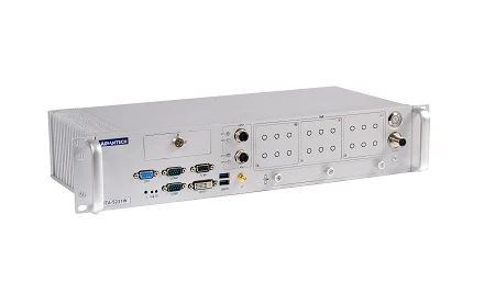 Fanless Railway PC with Intel Core i5-6442EQ 1.9GHz, 16GB DDR4, DVI-I, 2xM12 LAN, 2xDB9 COM, 2xUSB 3.0 Type A, 2x MiniPCIe, 4xM.2, up to 12xSIM, Audio, M12 72/110VDC-in, -40...+70C