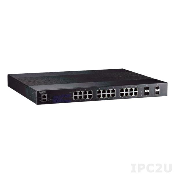 Industrial Rackmount Managed Layer 3 Ethernet Switch with 24x1000 Base TX, 4x10G SFP Ports, Modbus, Redundant 44-57VDC or 110/220VAC, -40..+75C Operating Temperature