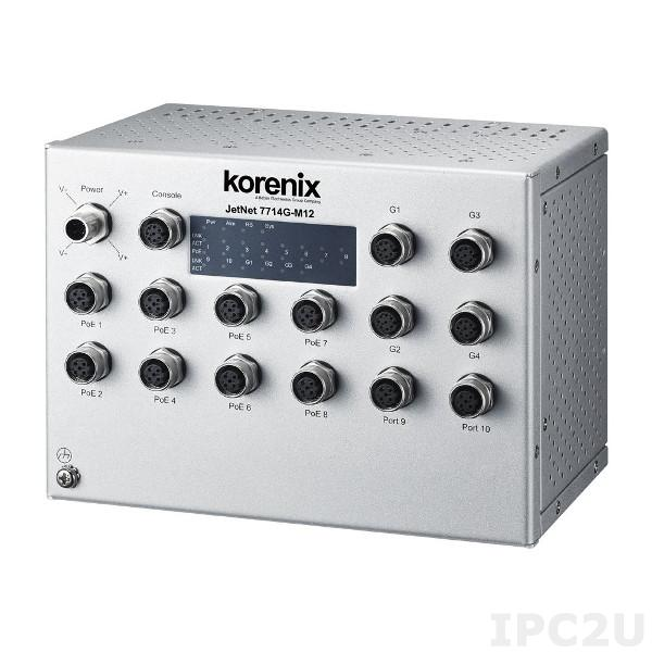 Korenix Industrial Managed Layer 3 Routing Switch with 10x 100 M12 Ports, 8x100 PoE M12 ports,4x M12 GbE ports, 77-137 VDC, -40...+75C Operating Temperature