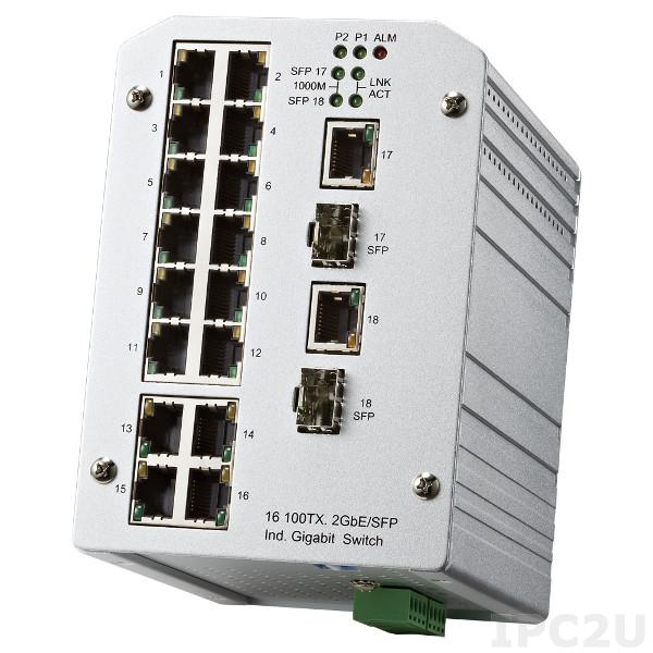 Korenix Industrial Unmanaged Gigabit Ethernet Rail-Switch with 16x10/100 Base-TX, 2x10/100/1000 Base-TX Combo with Hot Swappable, 2xSFP Gigabit Fiber Ports