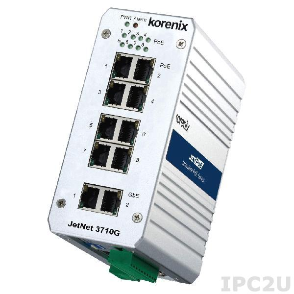 Korenix Industrial Unmanaged 8x10/100/1000Base-TX PoE Ethernet Switch and 2x10/100/1000Base-TX uplink Ports Wide Temperature -25..+70 C