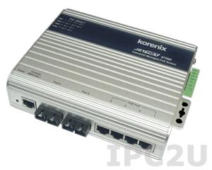 Korenix Industrial Managed 4x10/100Base-TX PoE Ethernet Switch with 2x100Base-FX uplink Ports /SC Connector, Single-Mode, Wide Temperature -40..60 C